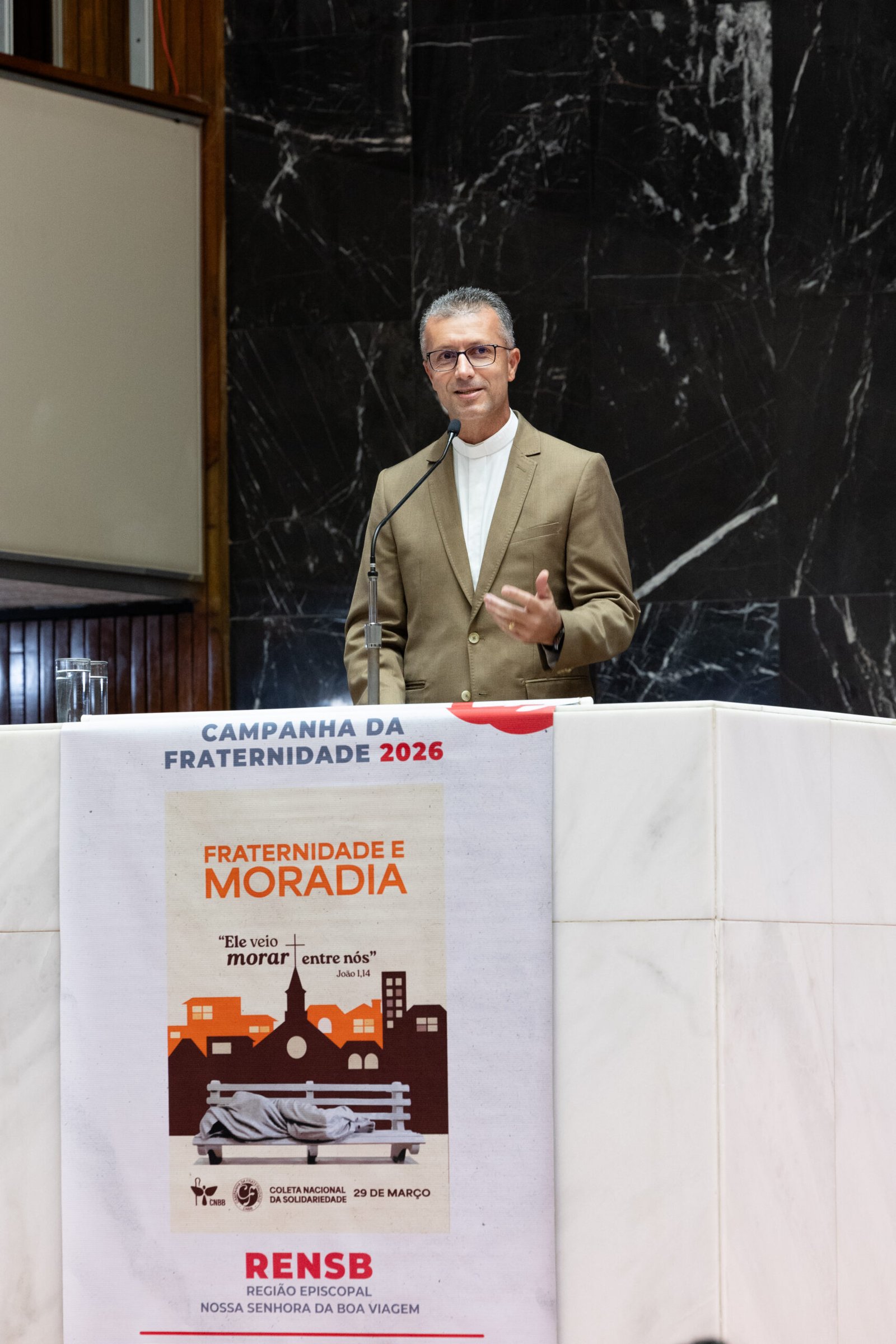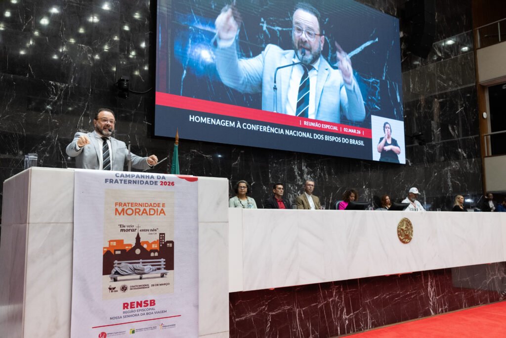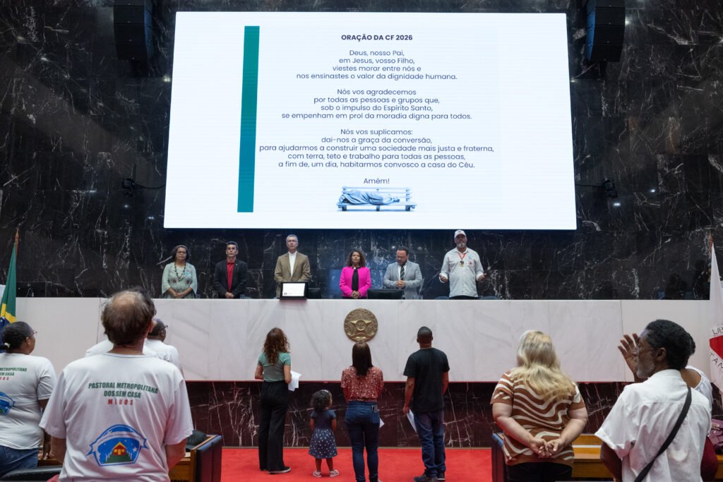 A Conferência Nacional dos Bispos do Brasil recebeu, na noite do dia 02 de março de 2026, uma homenagem na Assembleia Legislativa de Minas Gerais, a pedido do deputado Leleco Pimentel, pela realização da Campanha da Fraternidade 2026, que neste ano traz como tema “Fraternidade e Moradia” e o lema “Ele veio morar entre nós”. A CNBB foi representada pelo secretário executivo do Regional Leste 2, padre Rodrigo Souza da Silva.