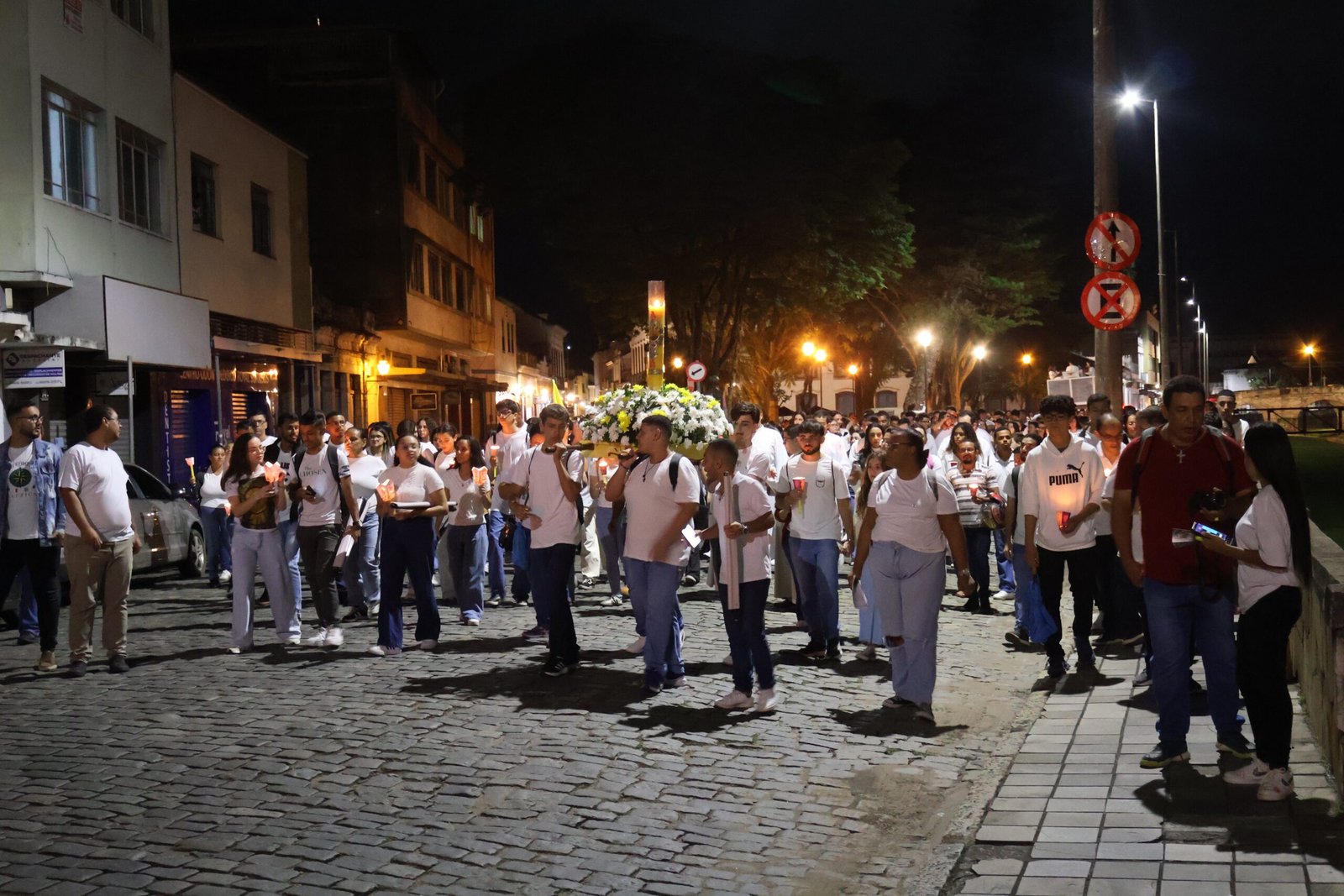 A chegada à Igreja de São José Operário marcou o ponto culminante da Via Lucis. Em clima de recolhimento, os jovens participaram de um momento de adoração ao Santíssimo Sacramento, concluído com a bênção eucarística. A experiência reforçou que o Cristo anunciado durante a caminhada permanece vivo e presente na Eucaristia.